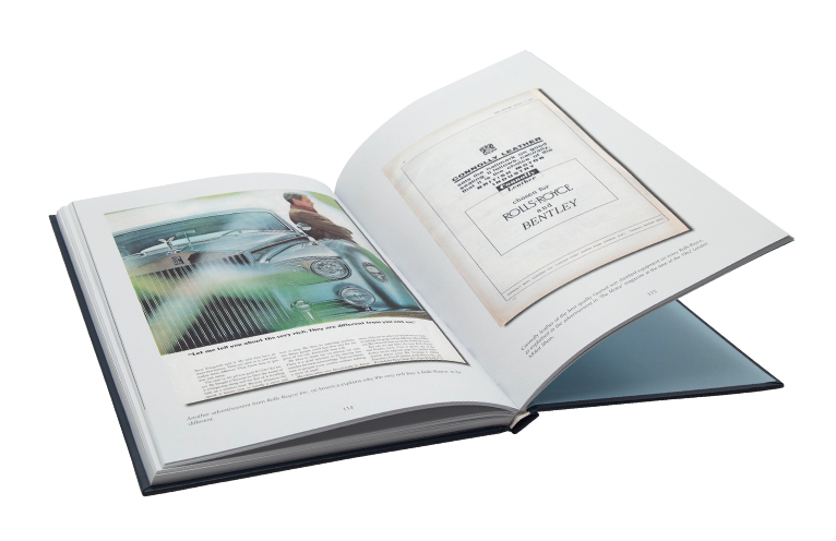 The book includes a collection of 140 advertisements with the Rolls-Royce Silver Cloud and Bentley S Series as the subject, all with commentary by author Davide Bassoli.